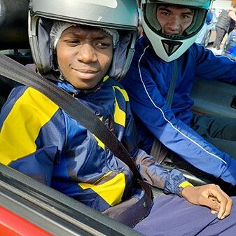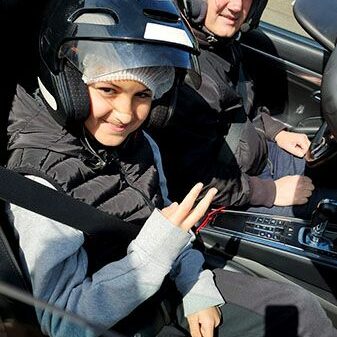 De jeunes patients hospitalisés découvrent un circuit automobile et la vitesse dans des conditions de sécurité maximum.