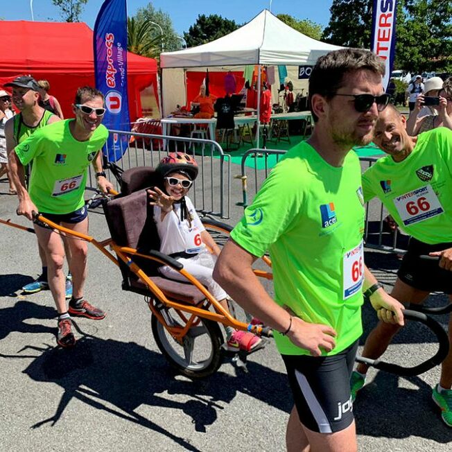A notre grande surprise, confirmée par les sourires et les commentaires de nos deux petites concurrentes, une des 2 équipes de l’ACEF Rives de Paris et de l’ADASP 91 a gagné les Championnats du monde de joëlette le 1er juin 2019 qui ont eu lieu à Saint Trojan Les Bains. La victoire a été partagée pour Roxane et Tess !