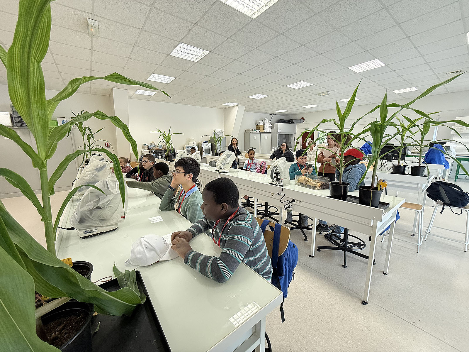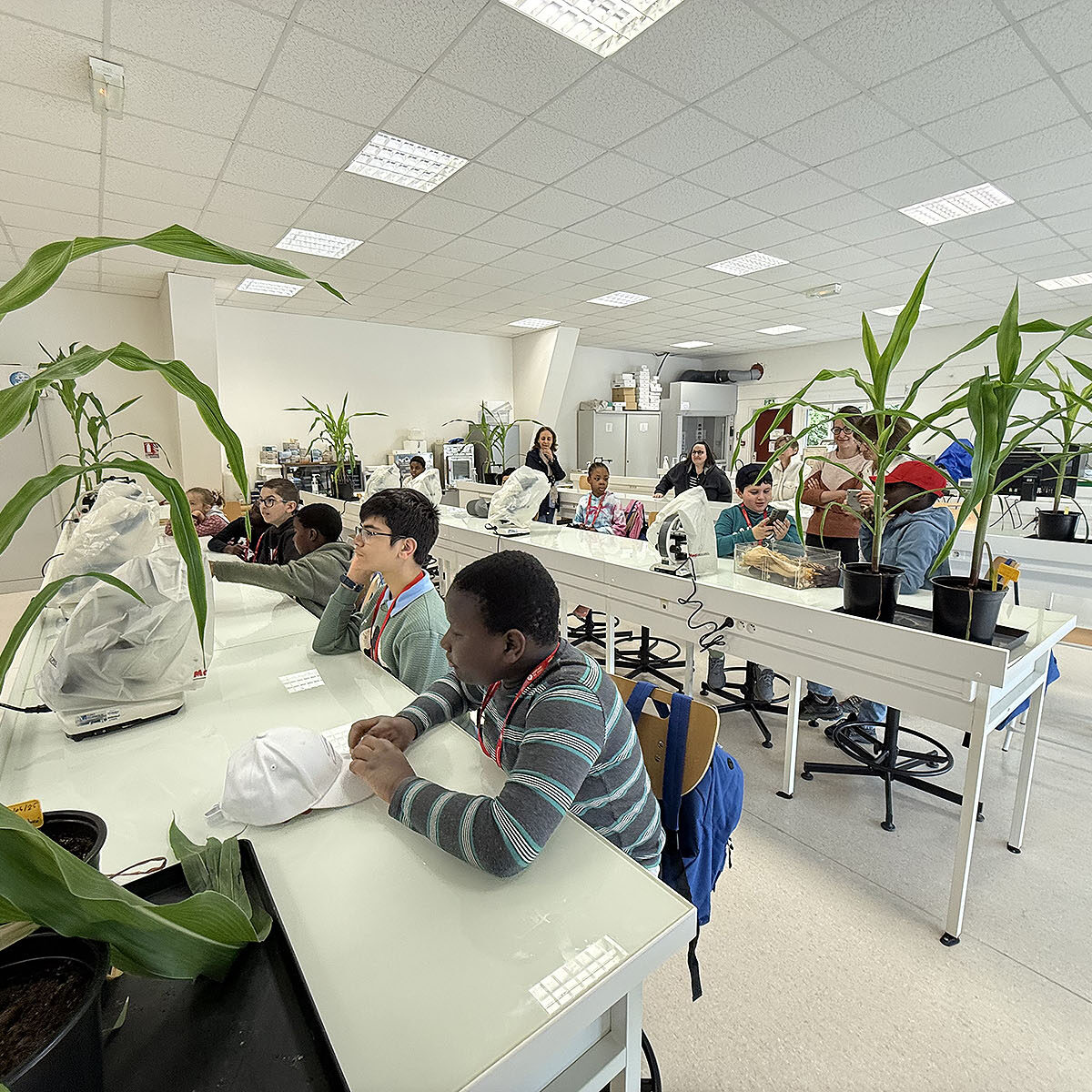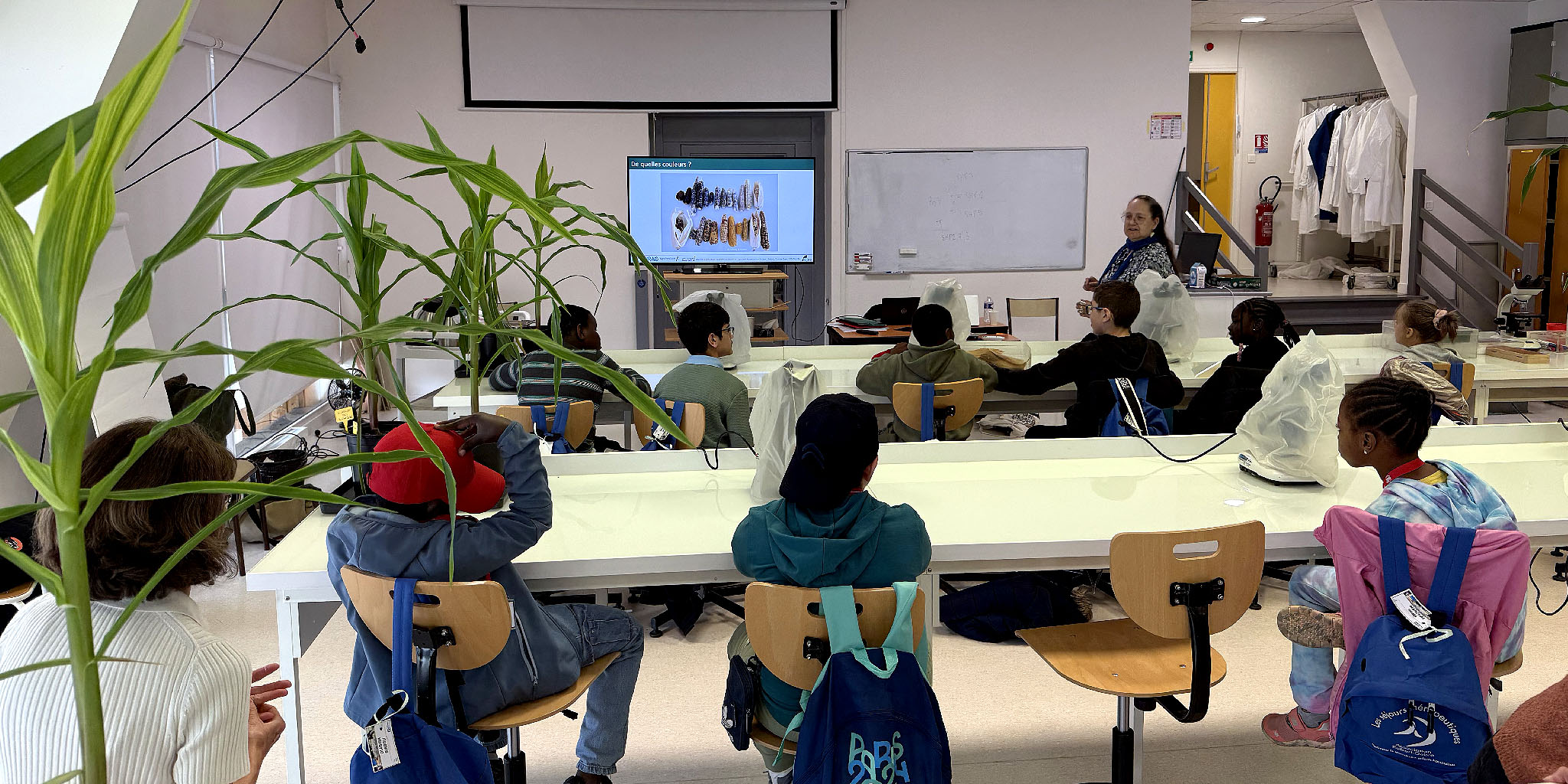 Le matin, ils ont pris part à un atelier scientifique animé par les chercheurs de l’INRAE, autour d’un thème aussi original que coloré : « Des maïs tout en couleurs ».